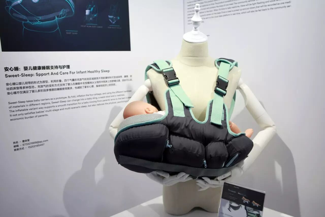安心睡以婴儿背带的形式为原型,以婴儿身体标准数据为依据,以现有相关产品的行业标准为指导,结合婴儿骨骼和睡姿、成人身体受力的实际测量分析进行产品设计。利用折叠、四个气囊区的充放气和不同区域的软硬材料使用,安心睡能变型为背带、腰凳、防吐奶床垫等不同的具体形态。充气的变型方式也支持了婴儿从父母怀抱睡眠到床上睡眠的平稳过渡。安心睡不仅满足了婴儿的使用需求,也减轻了家长照顾婴儿时身体、心理和经济上的负担。