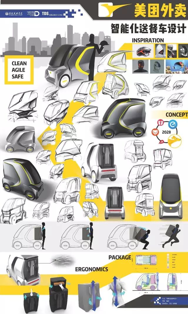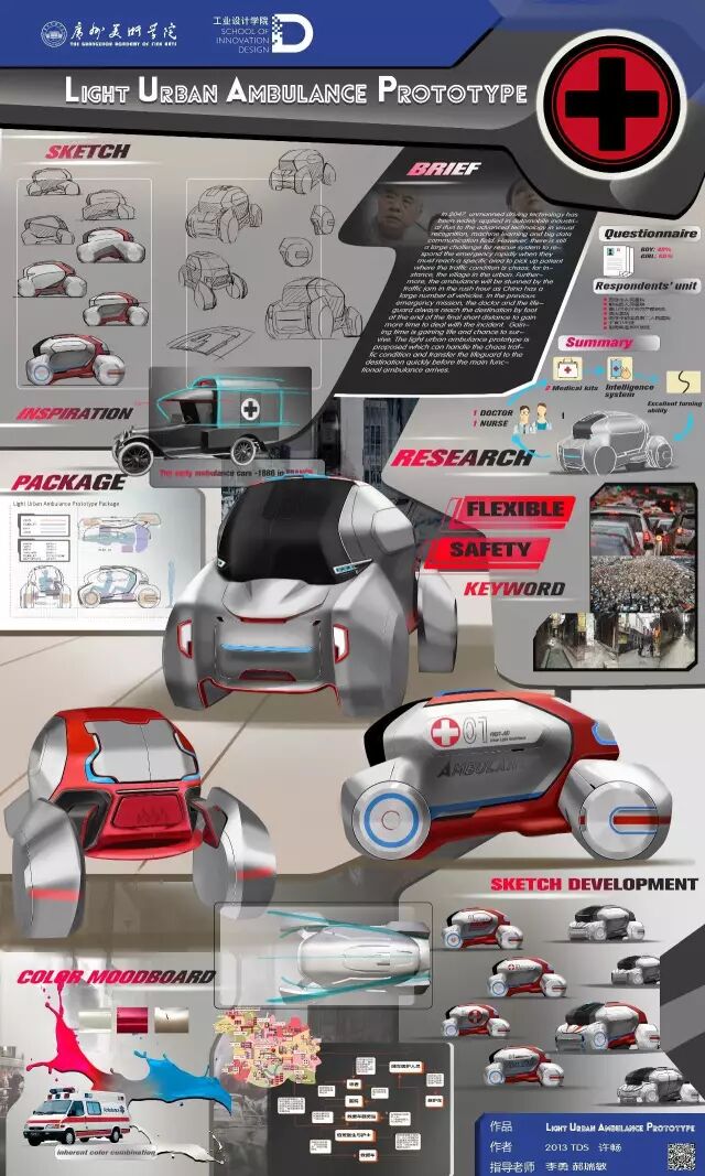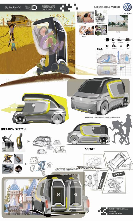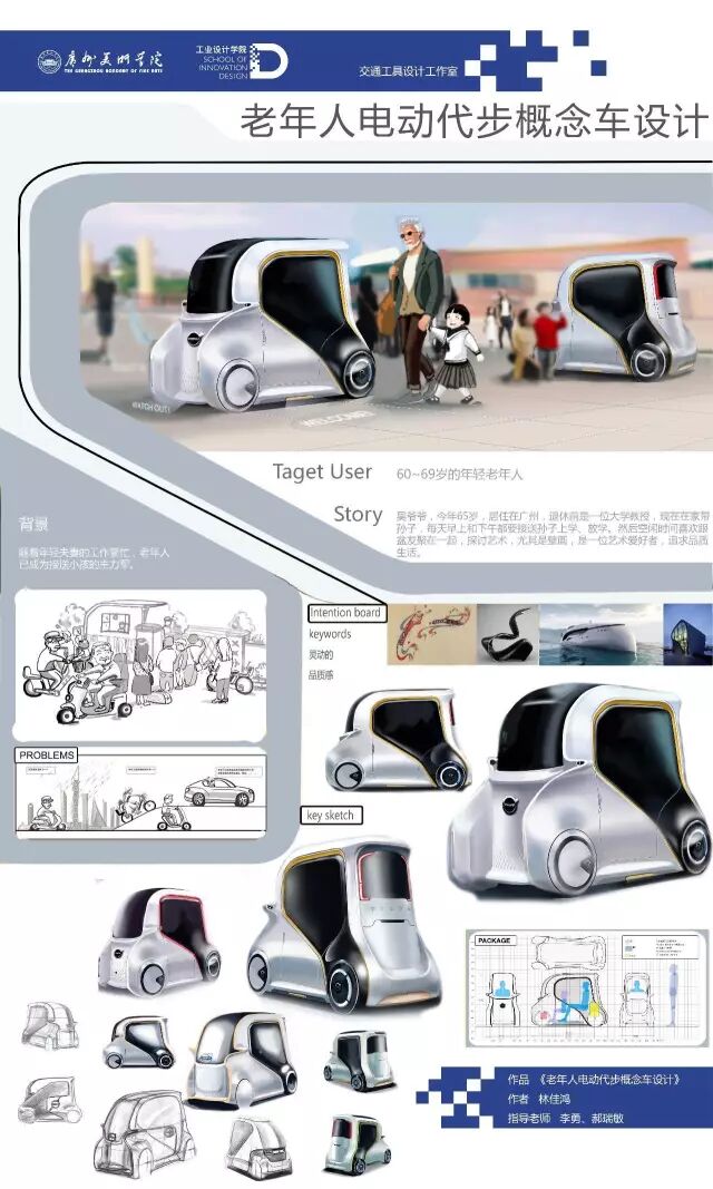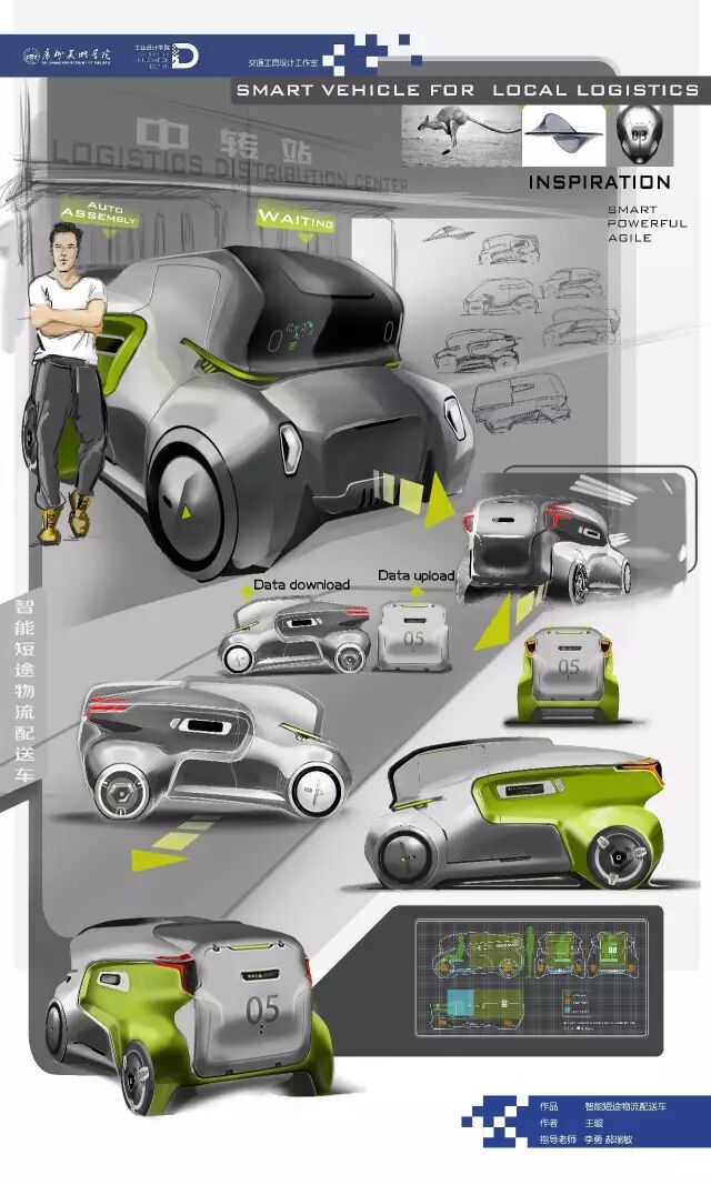 个人交通工具方向针对用户未来出行方式和场景进行了多样化探讨,在智能物流车、老年人代步车、亲子交通工具等设计选题中结合互联网、物联网、无人驾驶等智能科技概念,具有一定的前瞻性。