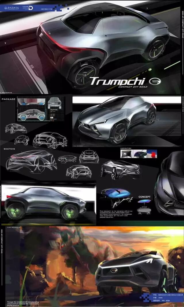 今年广美交通工具设计工作室毕业生共十六名,设计主要有两大方向:新能源汽车和个人交通工具。