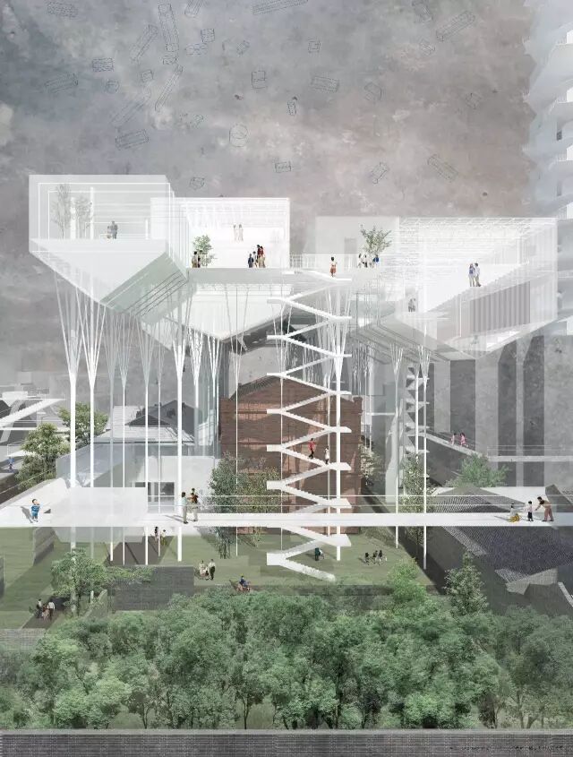 《城市道路上方的社区中心》 作者:任益德 指导教师:程启明、苏勇、刘文豹