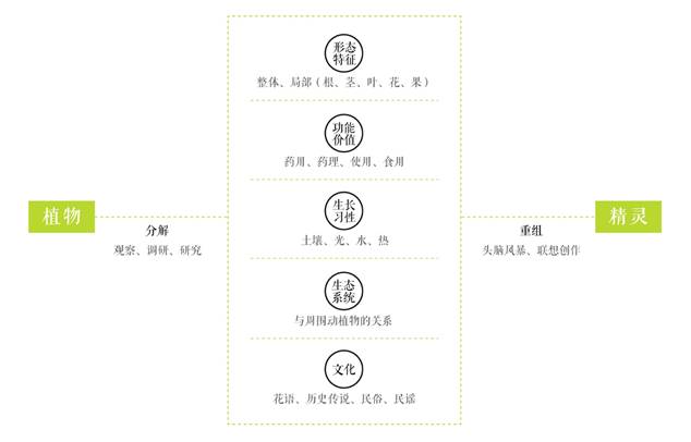 其实整个过程,就是分解与重组的过程。通过观察、认识,把一种植物分解成不同的部分:形态、结构、功效作用、生长环境…这需要孩子的观察力与感受力,也需要科学家在中间的引导与解释;然后把这些不同的局部,通过联想与创作,重组一个有血有肉的精灵。