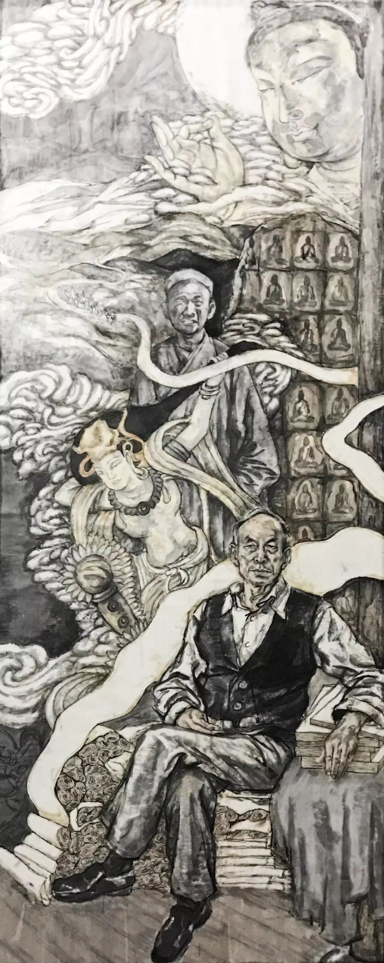周晓阳 《思》,纸本设色,300×122cm