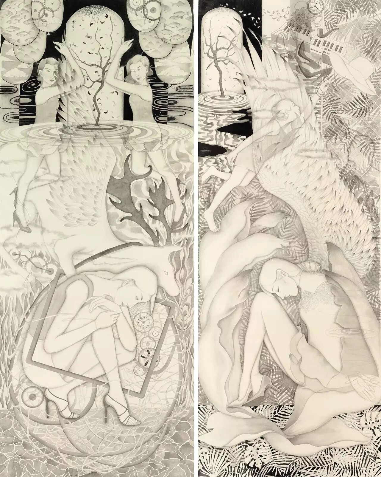 朱舒洁 《境》,纸本设色,274×110cm×2