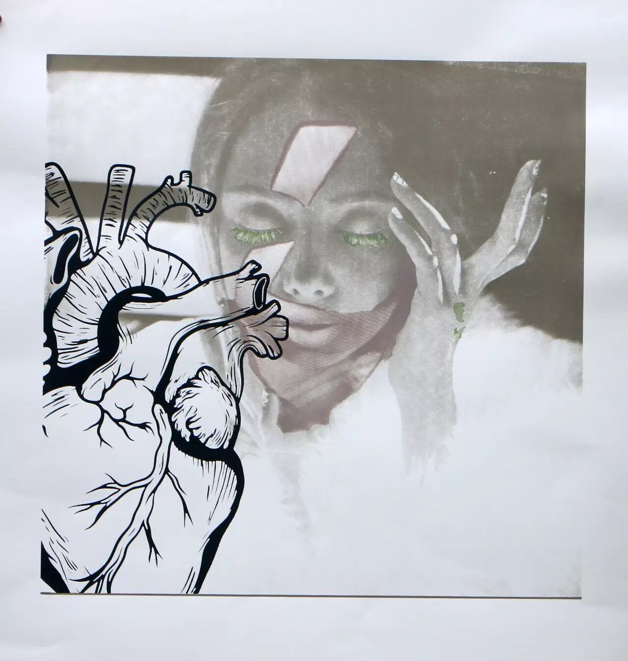 姜礼津《潜藏的面孔》丝网版 40x50 2017年