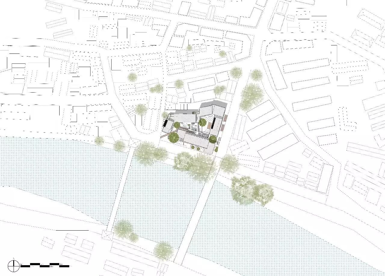 基地位于瑞金老城区西门口,随着城市中心的北迁,老城区功能严重衰退。设计通过与周边历史遗存的对话,并提取老街区的空间及物质记忆原型,结合当代元素和手法,流动多变的空间,既给当地曲艺文化的发展和传承提供了场所,又应对了青少年探索活泼的天性。建筑在其中进行新与旧的对话,老一代和年轻一代也在其中进行交流。这是一个本土曲艺文化传承的载体,一个开放的、包容的、地域的公共空间。