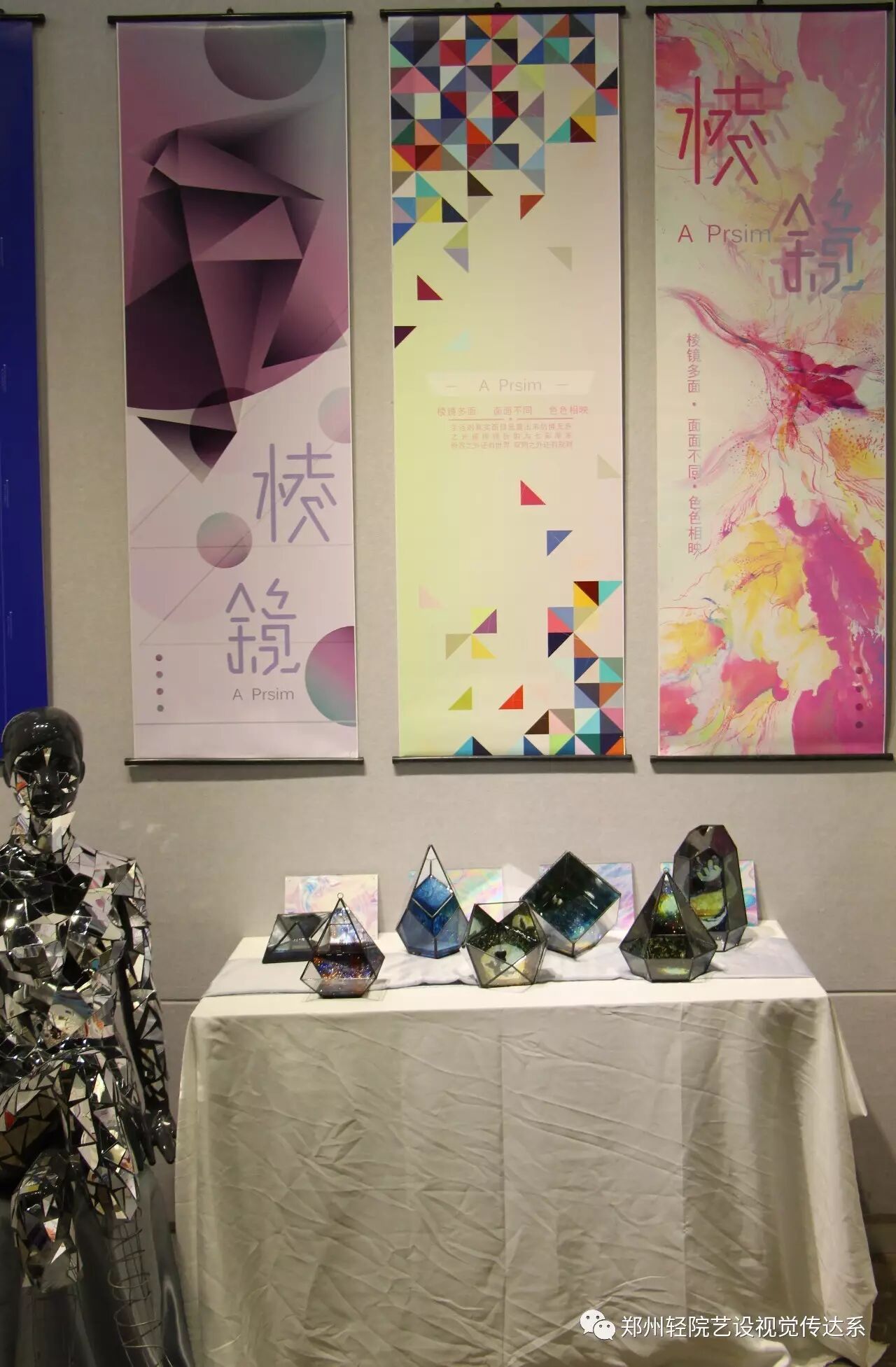 棱镜本为无色的透明体,但却可以折射出光的色彩,犹如我们的生活,虽然平凡但却通过零零碎碎的琐碎片段构成了每个人精彩璀璨的一生。生活的真实面目仿佛无色却能被棱镜折射为七彩,破碎的镜子和玻璃的拼贴让每个人都能从零碎中找到独特的观赏乐趣。