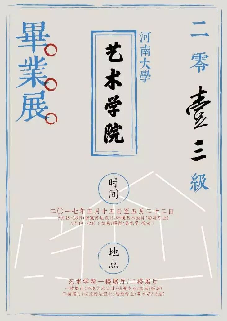 2017年5月15日,河南大学艺术学院13级视觉传达设计、环境艺术设计、动画专业的137名学生迎来了自己最光辉的一刻——毕业设计展。作品类型涵盖家具设计、装饰设计、商业空间、园林设计、包装设计、插画设计、UI、动画周边设计、动画影片制作等。四年来,从稚嫩到成熟,我们一步一步慢慢成长,每一幅作品背后都有一个灵魂,老师教导我们“做设计首先要感动自己,之后才能去感动他人。”也许只有设计,才会让我们的灵魂获得升华,让我们挥洒梦想。大学生活即将结束,未来的日子仍须努力。感恩,亲爱的母校!感恩,亲爱的老师!在这里,我们收获了自信,感受到了真诚。请相信,无论身处何方,无论从事什么工作,我们都将牢记母校的校训——“在明明德,止于至善”,为国家、为社会做出贡献,为自己的梦想努力!