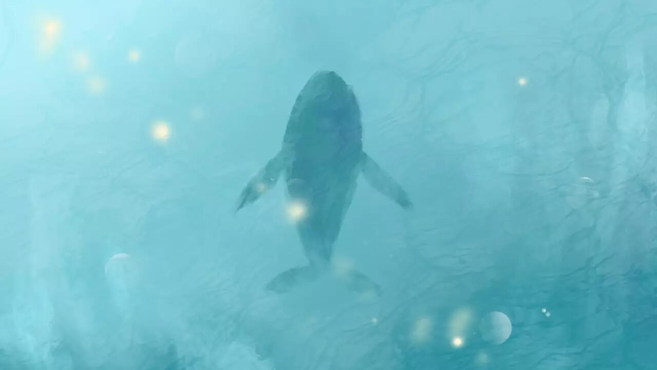 一个遭遇了海难的女孩在茫茫大洋正中与一只没有族群的孤独的蓝鲸不期而遇。蓝鲸庞大的身躯是一座孤岛,一片荒丘,也是女孩的保护伞,而女孩为蓝鲸歌唱,抚摸蓝鲸的伤口,陪伴着蓝鲸在海上日日夜夜地漂流。