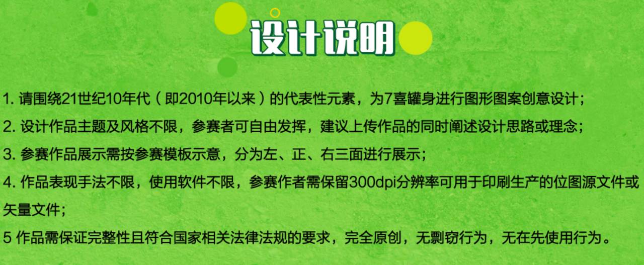 6. 为了作品呈现的统一性以及便于主办方的传播推广,请参赛者使用本次大赛【专用模板】进行作品上传,并存为RGB模式、JPG格式(【专用模板】不作为影响作品获奖的必要因素)。