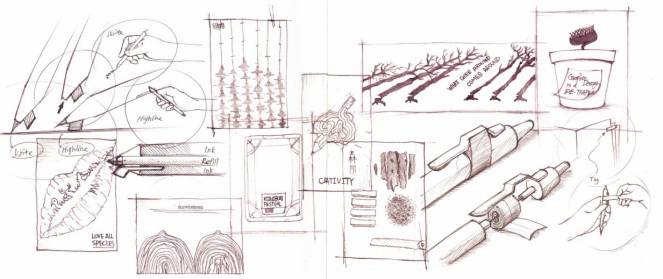 现在许多的学生不喜欢画草图,嫌草图麻烦。其实,计算机软件越是操作便利,反而越显得草图的重要。我们在绘制草图时不需要考虑太多的细节,直接快速记录下瞬间的灵感,有时候一个创意能够画出四五个不同方向的草图。草图的完整度不需要太高,即便画完当场扔掉也不觉得可惜,重点是要确认创意方向而不是完成一副素描。许多同学刚有一个想法,便匆匆上机建模,往往会因为最初的思考不够周全而导致创意变形,灵感在种种完稿细节中消磨殆尽,越做越僵化,然后心灰意冷,丧失了最初捕获创意时的热情。
