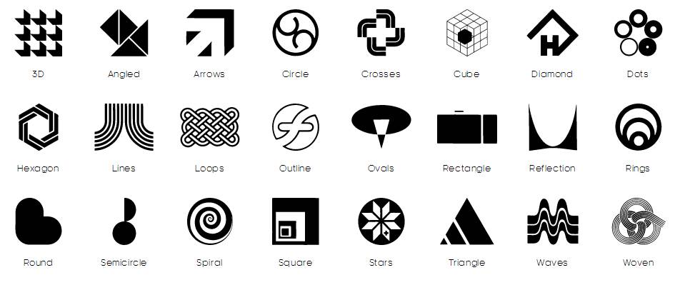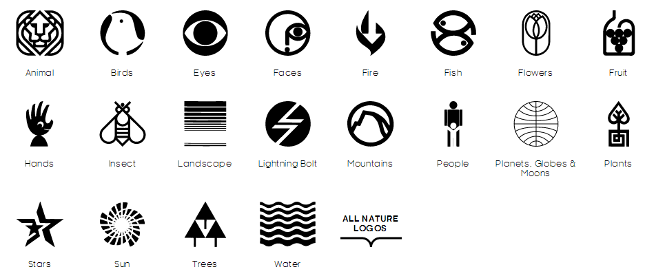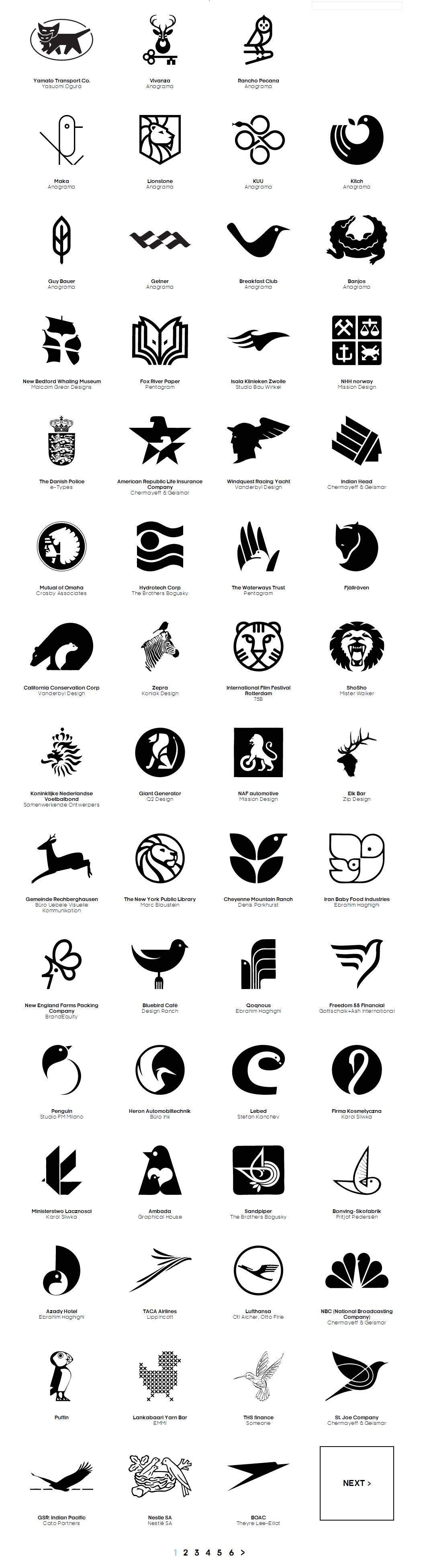 Logobook上不仅将logo按照Letters&Numbers(字母与数字)、Shape(形状)、Object(物体)、Nature(自然)、Business(商务)五大系列分门别类整理出来并将其处理成黑白的,还将每个logo的信息标注出来,方便设计师查阅!