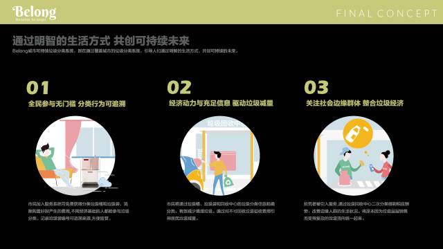 Belong——通过明智的生活方式 共创可持续未来 垃圾分类处理是一项系统的社会治理工程,核心是按可操作的模式引导居民在前端将生活垃圾分好类,然后将分离出来的垃圾流转到合适场所完成后续处理,最大程度地资源化利用。在人口密集,发展迅速的中国城市,垃圾分类的经济价值与环保意义不容小觑。
