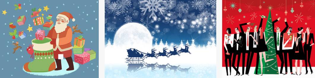 推荐关键词:圣诞老人、驯鹿、雪橇车、圣诞树、圣诞帽、圣诞袜、雪、团聚、礼物、许愿等。