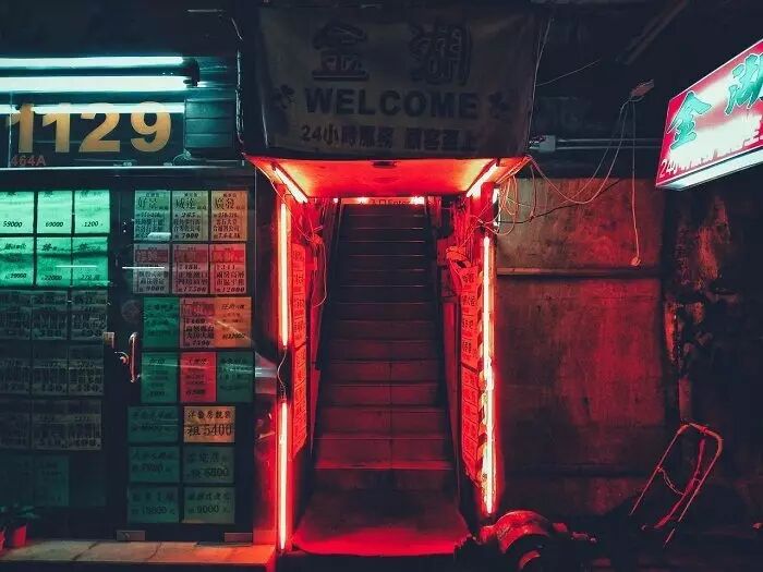 当你观察那些背景色调较暗的作品,你会发现霓虹灯和霓虹色是非常流行的元素。