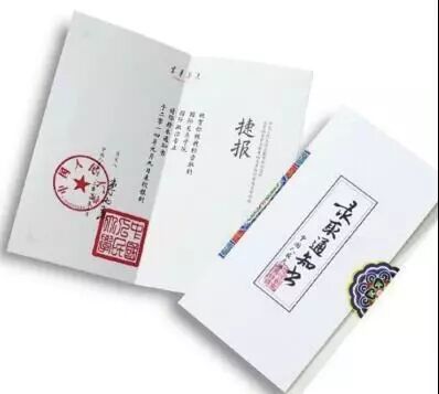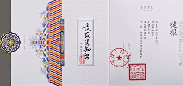 中国人民大学 中国人民大学的录取通知书可谓是古色古香、典雅大气。“捷报”两个大字更是给考生们增添了一丝金榜题名的欣喜。