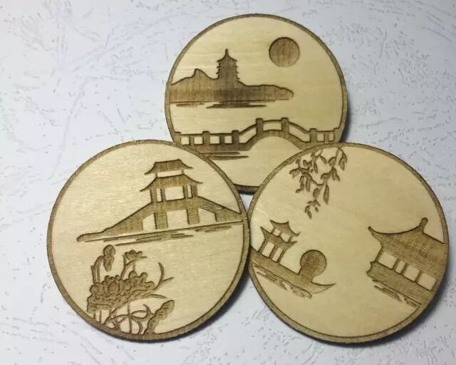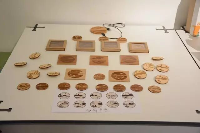 这次的毕业设计作品主要是以“一评西湖剪影”为原型,运用杭州丰富的竹资源,做的旅游纪念品,有杯垫、冰箱贴等。