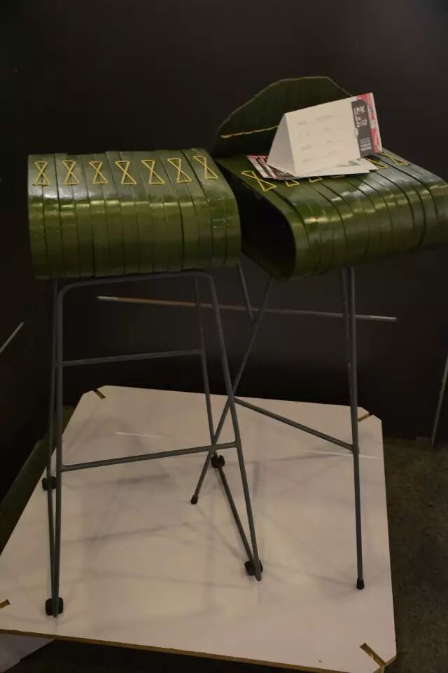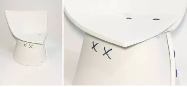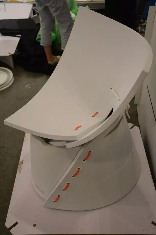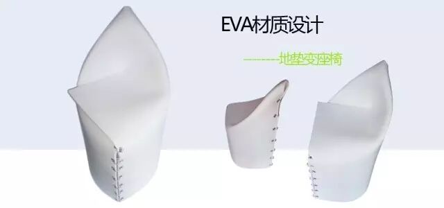 用一整张EVA材料折叠成一张椅子,通过绳子进行固定连接,便于拆装携带。通过设计巧妙的折叠方式使柔软的材料产生结构强度,同时成为舒适的坐具。