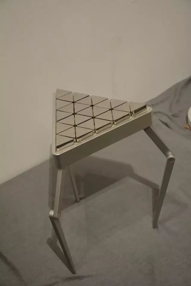这把椅子的设计理念是以参数化建模来求取椅子的新形态,特点是造型独特,形式简单,应用立体剪裁的方法来避免焊接,方便加工。制作过程较为坎坷,期间遇到许多绕不过去的设计难点,包括不锈钢卷制,如何利用传统工艺去加工看似不可能的造型,成为这个设计最重要的方向之一。