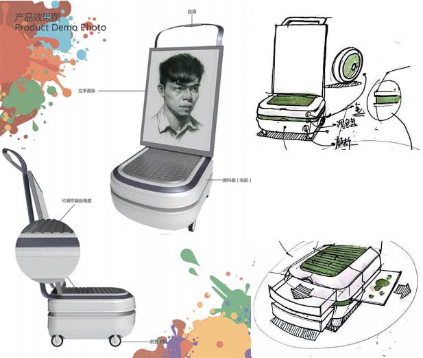 这款设计的作用不仅仅是解决了在外出写生的过程中画板大、沉的问题,而且可以解决在写生的路途中,更方便地携带,以节省画者体力。