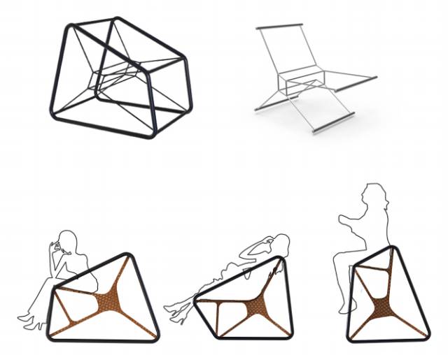 该座椅形态简约,轻巧,它可随着角度旋转实现不同的坐姿状态。可以躺,可以坐,可高可矮,形式多变,可以根据自己的喜好来自行选择使用。这样的特殊的座椅给使用者带来了更多的互动机会,也在一定程度上让使用者在使用的同时加大的对它的把玩关注。它已经不仅仅是一件常规满足功能使用的座椅,同时也是一件让人操作、娱乐的趣味伙伴。