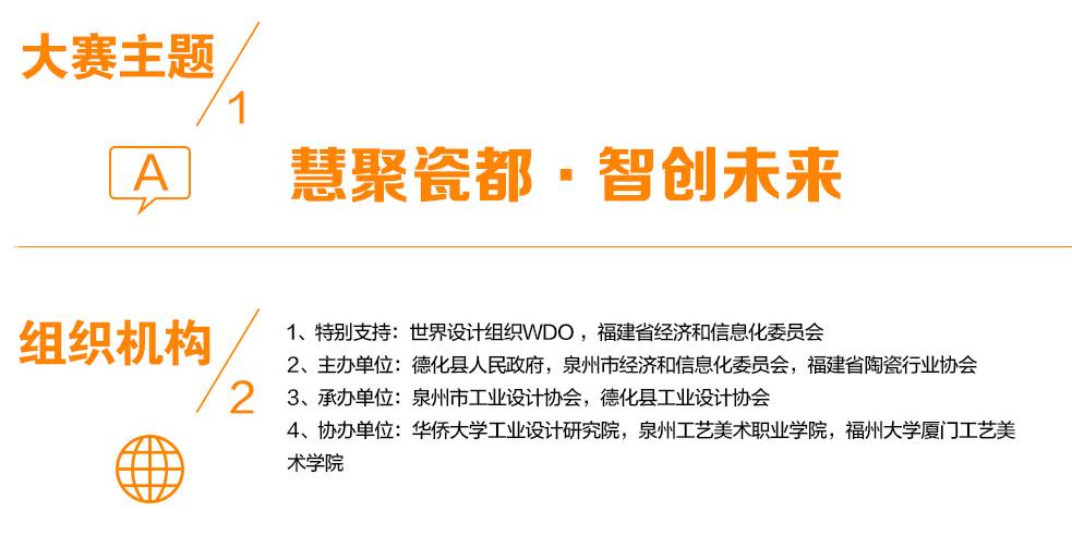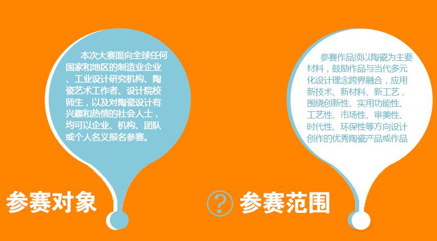 本届大赛以“慧聚瓷都·智创未来”为主题,以“互联网+设计”为模式,征集范围为产品类和概念类,参赛作品须以陶瓷为主要材料,鼓励作品与当代多元化设计理念跨界融合,应用新技术、新材料、新工艺,围绕创新性、市场性、实用性、审美性等方向设计创作的优秀陶瓷产品或作品。大赛面向全球任何国家和地区的制造业企业、工业设计研究机构、陶瓷艺术工作者、设计院校师生,以及对陶瓷设计有兴趣和热情的社会人士,均可登录矮凳网(www.iden.cn)了解赛事的相关安排并在线提交申报材料报名参赛。