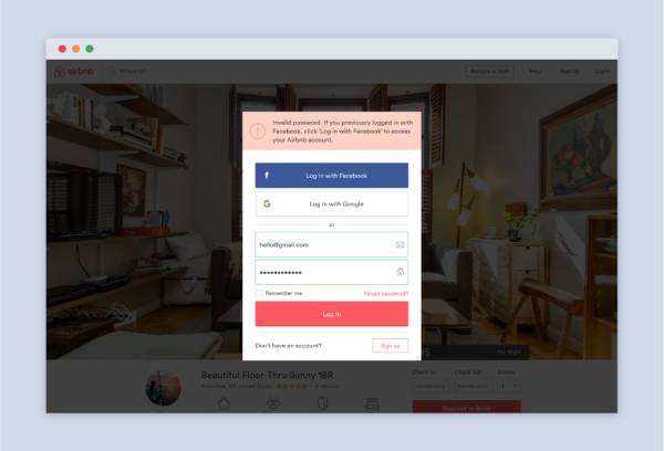 对于错误信息,Airbnb使用了亮红,可以说是一种rausch的阴影吧。这种红,配上惊叹号,立马吸引住了眼球而且将系统的状态提醒你了。