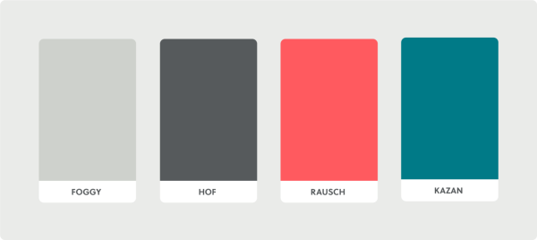 Airbnb的首要色是Rausch, 该颜色是以公司诞生的街命名。Kazan所谓次要色,而另外两个灰色则作为背景色使用。