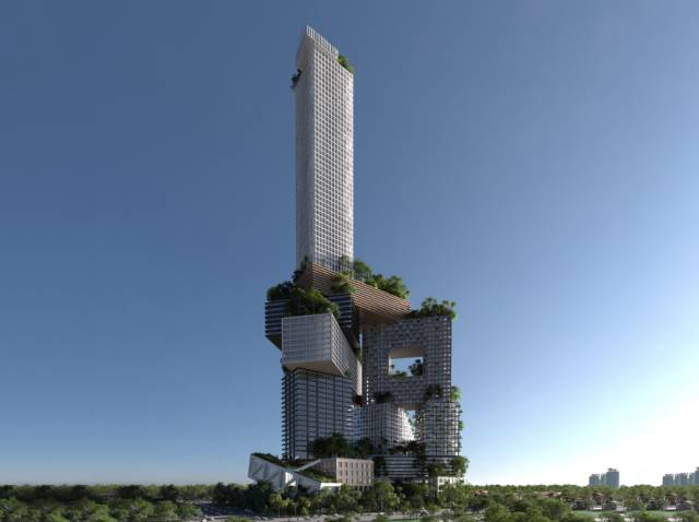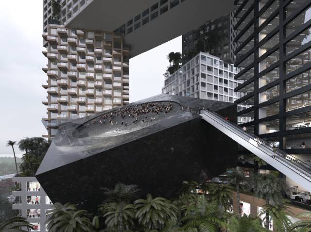 印尼雅加达天空之城绿色混合建筑设计项目将各种多样性概念浓缩在一个综合体当中,这是一座微型城市,一个将多样性向城市范围推行的孤例,但又与周边文脉保持连接。
