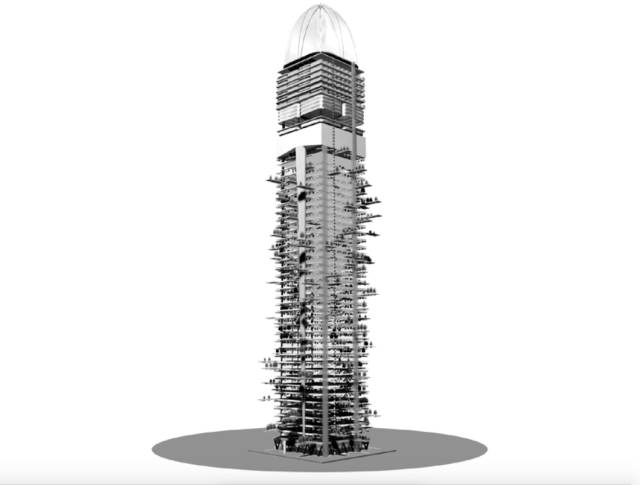 空中花园周围还会加建楼梯、升降机、扶手电梯和“卫星”花园,如同从支承结构生长出来的枝桠。不论是在单体建筑内外添加各种植被,还是在总体规划时将缺少绿化的城市中引入自然,让自然在城市环境中重生也是 MVRDV 设计理念的重要元素。