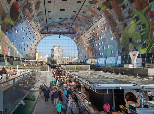 鹿特丹中心的市集住宅则示范了步行化的闹市区如何赢得公众赞许。主要做法是在市场地下修建了全市最大的停车场,将街面上的所有汽车都移至地下。该项目十分成功,已经有人提出近期在鹿特丹市中心彻底实行无车化。