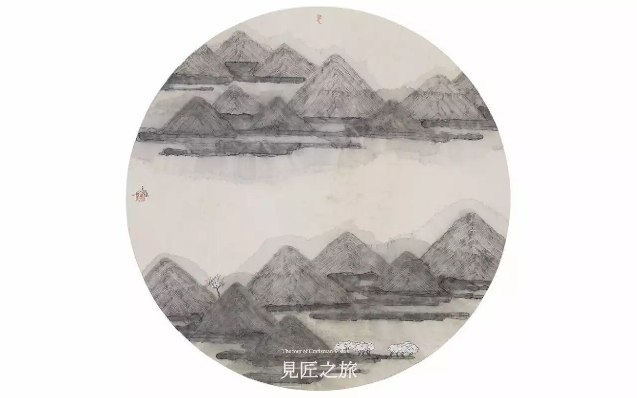 他以水墨山水画见长,但又和传统的水墨山水画区别明显。他的画里采用了大量的平面设计与版画的语言,将山水化为一种符号,通过不同形式组合排列着,使得作品意境深远又充满现代感。