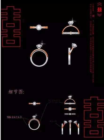 评委点评:该作品最瞩目的莫过于钻石的镶口。线条结构很好地表达“喜”和“结”的感觉,二者互相呼应,颇具创意,值得欣赏。