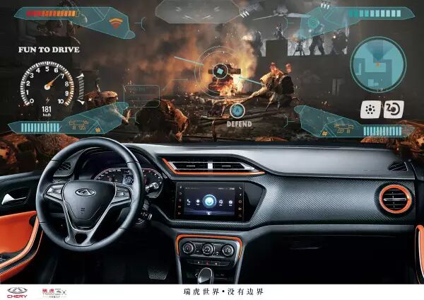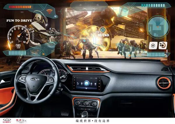 将游戏界面与瑞虎3x相结合,打造一个瑞虎专属世界,驾驶瑞虎3x正如进入奇幻游戏世界,做你想做,挑战自我,智趣玩美,这就是瑞虎的世界,没有边界。