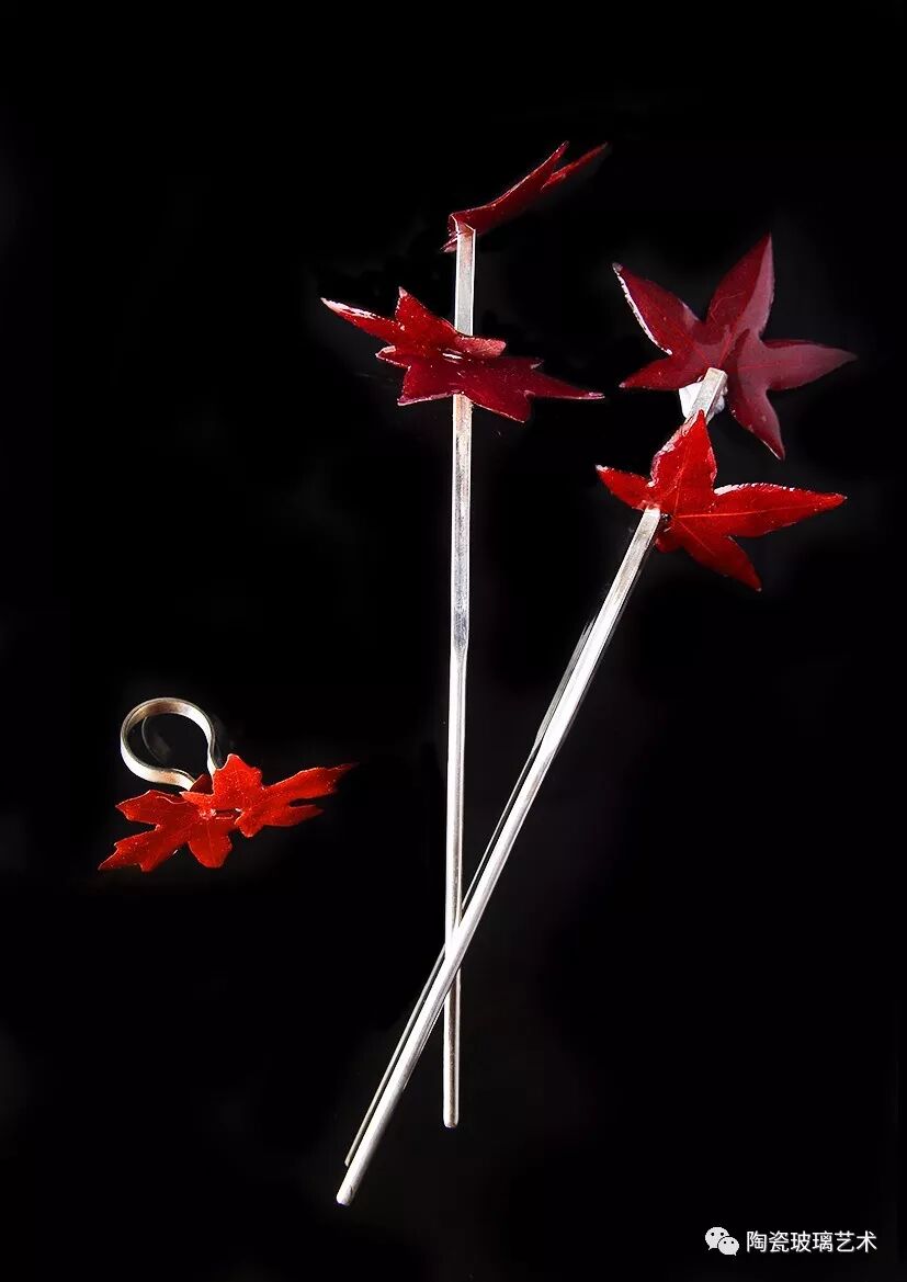 作品简介:作品创作灵感来源于植物的细胞,通过放大和夸张的手法呈现出细胞的抽象特点,运用玻璃的通透性和多变的颜色关系体现出细胞光彩的色泽,使视觉得到冲击。玻璃和金属的连接是设计实施的难点,在不影响作品的效果下,采用冷连接方式,同时用珍珠做点缀,展现出最理想的效果。