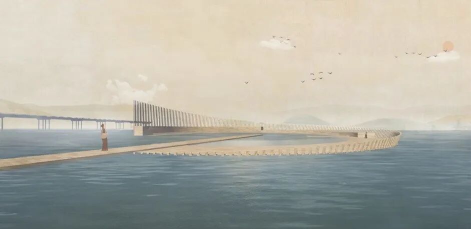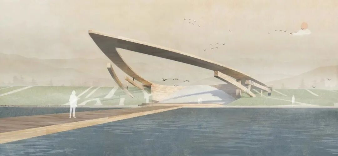 作品阐述: 作品将“以水为脉,寻迹疍家文化”作为故事脉络,试图通过公共艺术的方式将渐渐消 逝的疍家人水上文化以完整、有趣的方式呈现给人们。作品以叙事性的情感线索为基调、 采用简约的方式将疍家的历史娓娓道来;陆上和水上两条线路丰富了人们的游览体验,同 时运用元宇宙线上游览程序和线上导览小程序平台拓宽佛山三水大塘镇疍家文化的宣传渠 道。陆上路线由乘风剧场与破浪空间组成,游客可以先在乘风剧场沉浸式地欣赏疍家人的 民俗歌舞,将自己代入到疍家人质朴且极具感染力的文化氛围中;接着步行至岸边的破浪 空间,亲身感受疍家人的水上生活,亲近河水并体验朴素的疍家捕鱼技术。最后,人们在 破浪空间乘坐疍家船只开启水上游览,在欣赏沿河两岸的风光之余,还能通过线上小程序 重温关于广府疍家人的艰辛上岸史和其生活习俗,将疍家人以舟为家的形象、乐观坚韧的 性格栩栩如生地展现在人们的眼前。