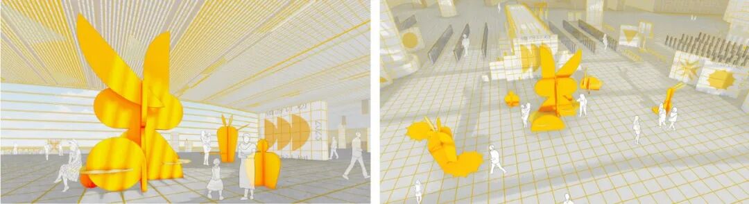 作品阐述:作品针对中国乃至全球都面临的干旱气候问题,提出人类应当对生态做出保护行动与回应。作品以2023年的兔生肖为首发元素,在机场繁忙空间中设立起一系列连续的公共艺术计划。装置作品由纷美包装回收的废弃牛奶盒再利用制作而成,同时将装置联合线上平台。希望以娱乐和吸睛的方式来引起广大人群对生态可持续的注意。